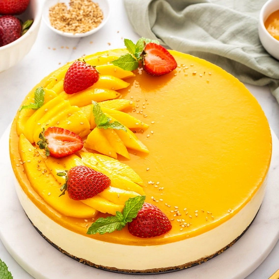 INGREDIENTS: Cream Cheese, Mango Pulp, Sugar, Butter, Biscuits, Cream