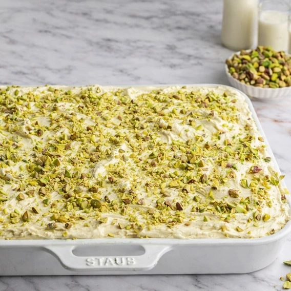 SIZE: Standard 1, 2 kg. Or custome orderCONTENTS: 8–10 ServingsINGREDIENTS: Pistachio Paste, Bana, Cream, Sugar, Milk, ButterTOTAL CALORIES: Approx. 260 Cal / per servingUNIT WEIGHT: ~700gVARIANT TYPE: DessertDELIVERY: Yes