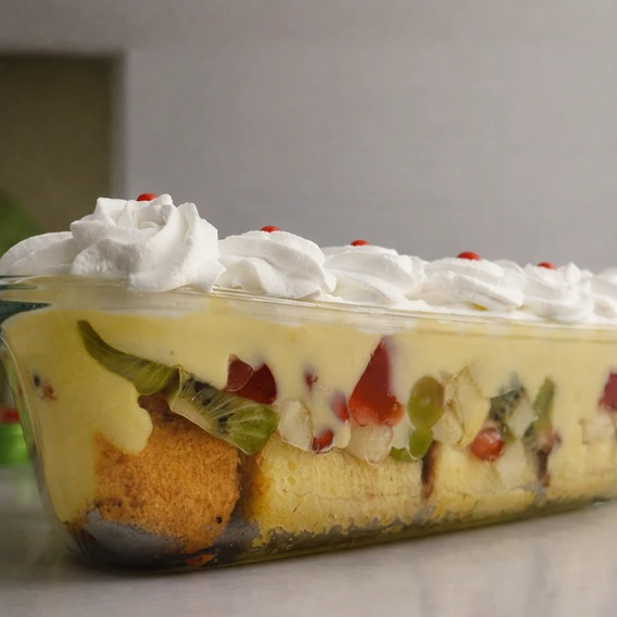 SIZE: Standard 1 kg. Or custom orderCONTENTS: 10–12 ServingsINGREDIENTS: Sponge, Custard, Cream, Fruits, ToppingsTOTAL CALORIES: Approx. 250 Cal / per servingUNIT WEIGHT: ~1000gVARIANT TYPE: DessertDELIVERY: Yes